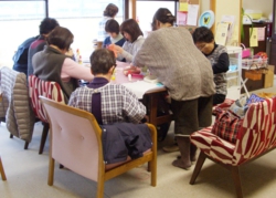 「いっぷくや」では、障がい理解、異世代交流、ひきこもり予防目的で、月1回ペーパークラフトのカゴ作り教室を開いています。子どもから高齢の方まで様々な話題が飛び交う中で楽しく取り組まれています。興味のある方は、ぜひ、ご参加下さい。