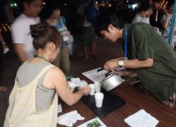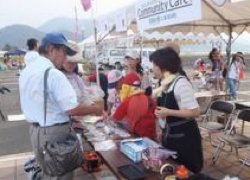 高浜町の特産品である杜仲茶を観光客の皆さんに知ってもらうこと。障がい者の就労につながるような商品開発。将来就労予定の障がい児たちに就労の楽しさを知ってもらうことを目的に参加しました。