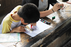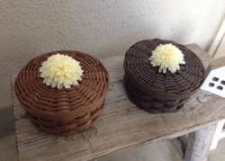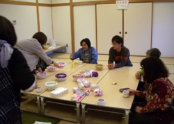 いっぷくやでは、障がい理解・異世代交流・ひきこもり予防目的で月1回、ペーパークラフトのかご作り教室を開いています。