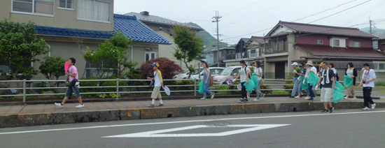 今回は、「障がいがあってもだれかの役に立てる活動もしたい!」という思いから、高浜駅~和田浜バーベキュー場までの約4キロの道のりを落ちているゴミを拾いながら歩きました。