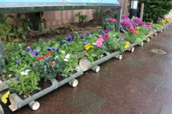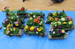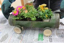 参加者14名で、駅にちなんだ電車型のプランターにあふれんばかりの花を植え、駅舎前に設置しました。